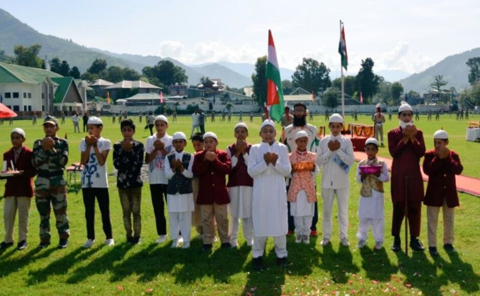 Children joined the celebrations in Rajouri. Prominent mainstream leaders were not present at the main event in Srinagar as they have been detained as a precautionary measure. Twitter@DIPRJK