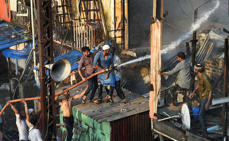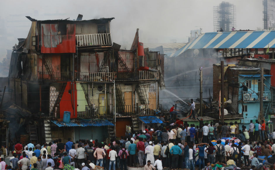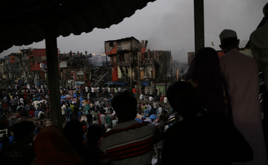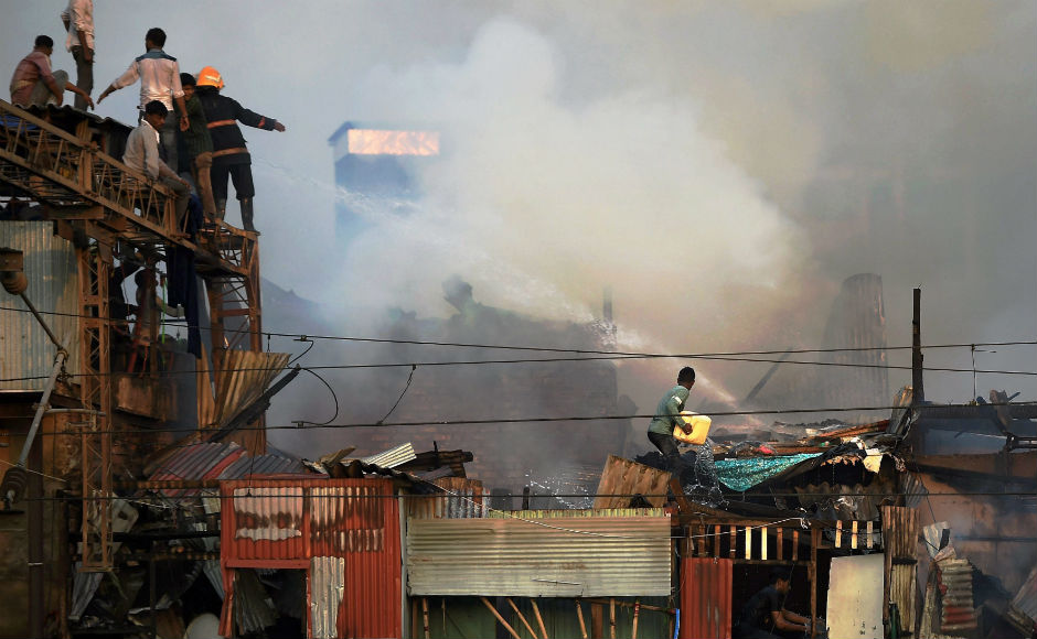 A major fire broke out at Bandra’s Garib Nagar slum in Mumbai on Thursday afternoon during a demolition drive and engulfed around 300 hutments and injured four, including one fireman. AP