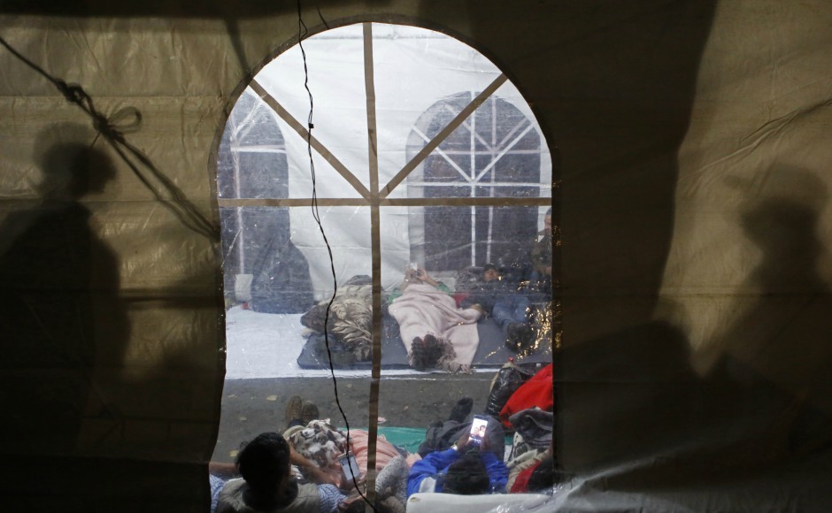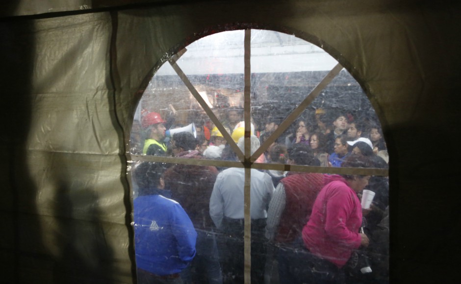 Onlookers stand in the street after midnight watching rescuers search for survivors inside a collapsed office building in Mexico City. The powerful 7.1-magnitude earthquake on Wednesday killed at least 272 people. AP