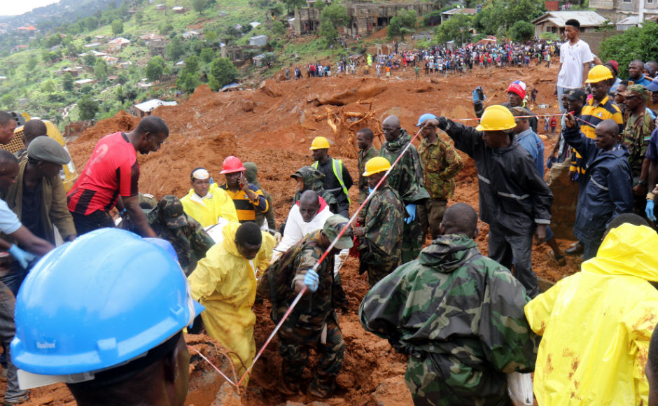 At least 400 people, including 60 children, were killed following the collapse of a hillside in the outskirts of Sierra Leone’s capital Freetown, early on Monday morning. AP