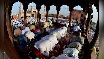 President Pranab Mukherjee on Monday greeted fellow citizens on the eve of Eid and expressed hope that the festival will strengthen the efforts of the people to enhance universal brotherhood, peace and harmony in the society. Muslims offer Eid prayers outside old-Delhi's Fatehpuri Masjid on Tuesday. (Photo: PTI)