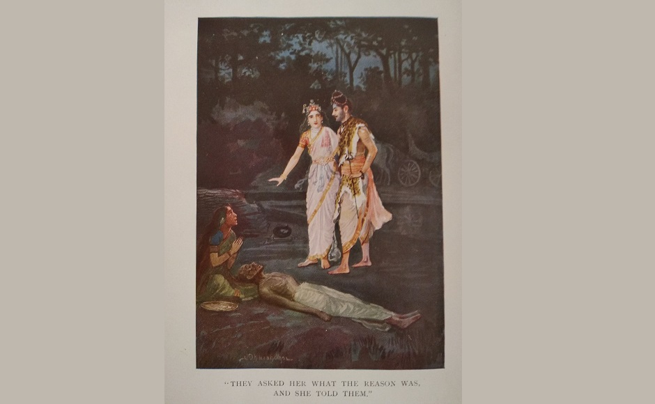 An exhibit titled MV Dhurandhar: The Artist as Chronicler flagged off on 19 August, 2018 at Dr Bhau Daji Lad Museum in Mumbai. The exhibition has on display works which are a depiction of Indian life. This painting, “Gave memorial honours to his dead father” appeared in the book Deccan Nursery Tales in the story The Rishi and the Brahmin by CA Kincaid, published in 1914.