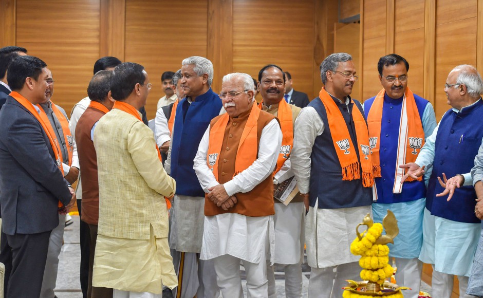In all, chief ministers and deputy chief ministers of 19 states attended the meeting, held at the party headquarters in New Delhi. Central ministers Rajnath Singh, Nitin Gadkari, Arun Jaitley and Sushma Swaraj were also in attendance. PTI