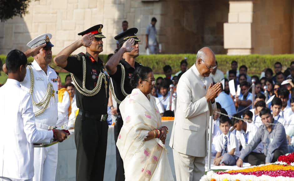 President Ram Nath Kovind accompanied by his wife Savita Kovind pays tributes to Mahatma Gandhi at the Rajghat, Gandhi memorial, in New Delhi. AP