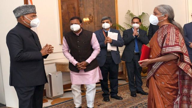 Ahead of her Budget presentation, Finance Minister met President Ram Nath Kovind at Rashtrapati Bhawan. This practice is as per tradition and is carried out each year. Image Courtesy: Ministry of Finance/Twitter