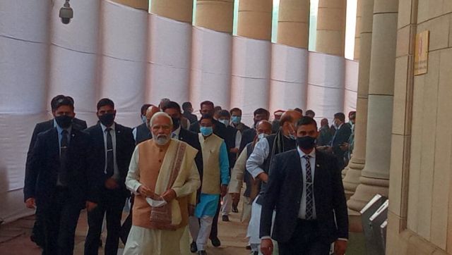 Prime Minister Narendra Modi is seen at Parliament building after the Union Cabinet approved the Union Budget 2022-23. Image Courtesy: Ministry of Finance/Twitter