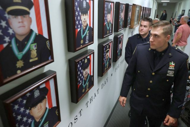 NYC Police unveils 'Wall of Heroes' memorial honouring cops who laid their lives down on 9/11