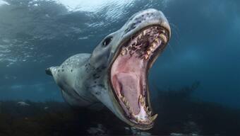 Every winter, orcas and humpback whales come to Northern Norway to feed on Atlantic herring. This huge humpback filled its mouth with the small fish, before swimming past the divers closely. Image Courtesy: Tobias Friedrich/Ocean Photographer of the Year 2024