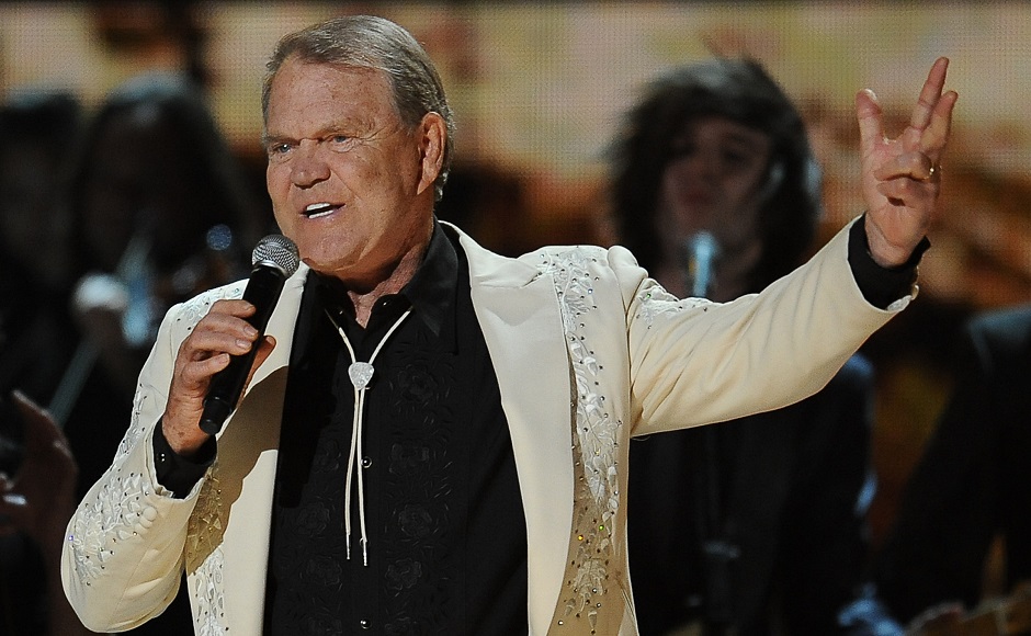 This photo taken on 12 February, 2012 shows Glen Campbell performing at the Staples Center during the 54th Grammy Awards in Los Angeles, California. Country music legend Glen Campbell, the ‘Rhinestone Cowboy’ who sold millions of albums over a career that spanned decades, has died at the age of 81 after a long battle with Alzheimer’s disease, his family announced on 8 August , 2017. Image from AFP