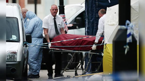 A body is removed from the scene in Russell Square, central London, after a knife attack on Thursday, 4 August, 2016. A woman has died and others were injured in a knife attack in a central part of London, the police said. AP