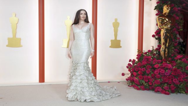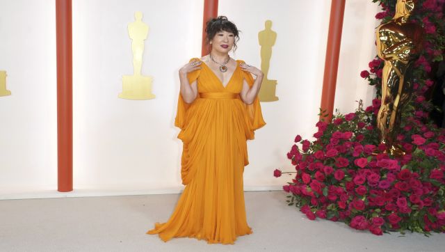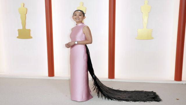Hong Chau, the star of The Whale and Best Supporting Actress nominee, oozed classic elegance in her Prada gown. The pretty-in-pink moment was elevated with the black sequined feather trail that gave the look a dark, sensual mystique. AP