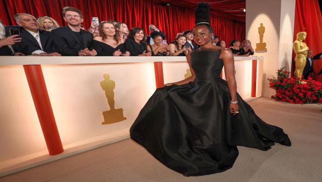‘Black Panther’ star Danai Gurira chose a black sleeveless gown with a voluminous skirt from designer Jason Wu. That amazing hairstyle turned this into one of the more memorable looks of the night. Reuters