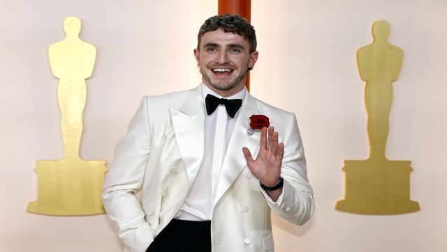 Irish star Paul Mescal went for a 1970s vibe with his white Gucci tuxedo and flared trousers. Reuters