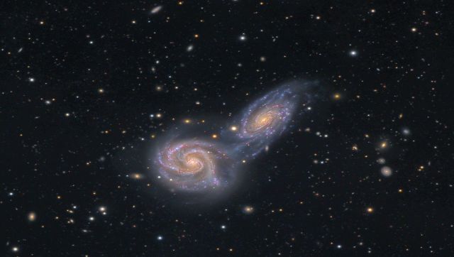 Cosmic Collision: NGC 5426 and NGC 5427 are two spiral galaxies of similar size engaged in a major interaction. Known collectively as Arp 27, the interaction is expected to continue for tens of millions of years. Image Courtesy: Mark Hanson, Mike Selby/Astronomy Photographer of the Year 14