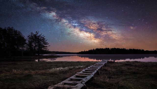 Ladder to the Stars: A stacked shot with 15 single exposures, taken in May 2021 at Shiroka Polyana Dam, one of the darkest spots in Bulgaria. Image Courtesy: Mihail Minkov/Astronomy Photographer of the Year 14