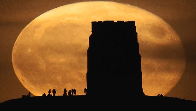Equinox Moon and Glastonbury Tor: A single exposure captures people enjoying the full Harvest Moon rising behind Glastonbury Tor in the United Kingdom in September 2021. Image Courtesy: Hannah Rochford/Astronomy Photographer of the Year 14