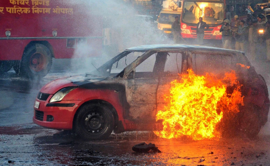 A bus was torched and a highway blocked in Haryana’s Gurugram where protesters violated prohibitory orders while the police had to use force to disperse an agitating mob in Lucknow. PTI