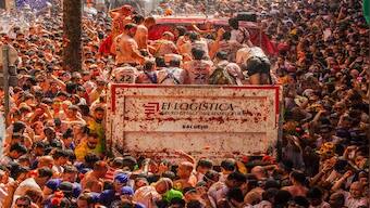 The La Tomatina festival has been dubbed as the world's biggest food fight. According to a report by Afar, the tomatoes used in the festival are especially produced for the event. This year, a convoy of six trucks carried around 130 tonnes of tomatoes were transported through the narrow lanes of Bunol. AFP