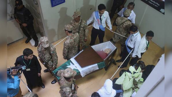 Mourners attend a state funeral of Pfau. She has been honoured by the State with the country’s two highest civilian awards, the Hilal-e-Imtiaz and the Hilal-e-Pakistan. AP