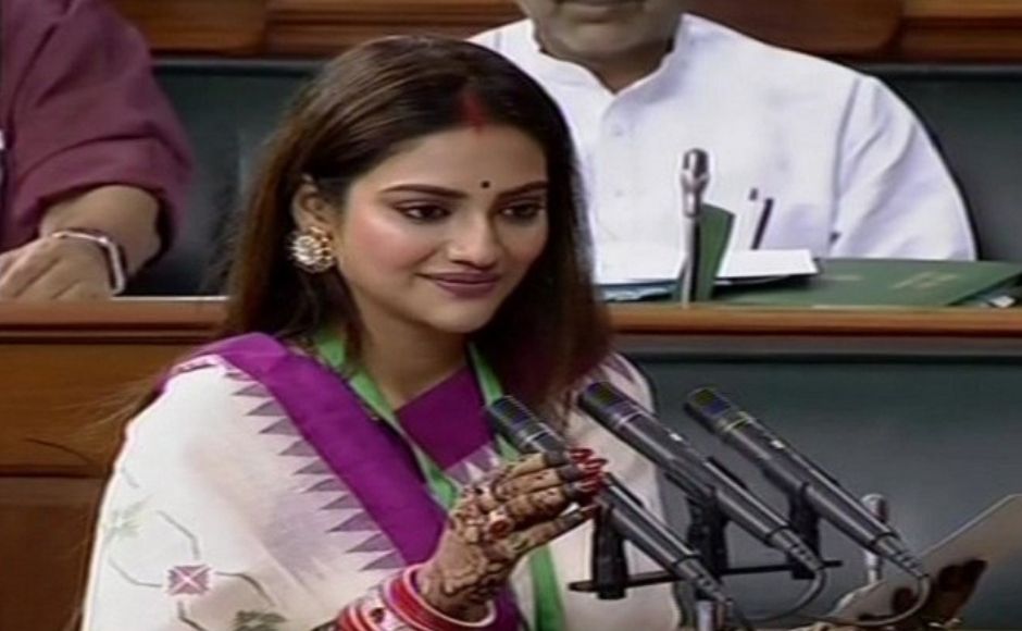 Newly-elected TMC MPs Nusrat Jahan Ruhi (in picture) and Mimi Chakraborty on Tuesday took oath as members of the Lok Sabha on Tuesday. They had skipped the official oath-taking ceremony for Jahan’s wedding in Turkey. Twitter/@ANI
