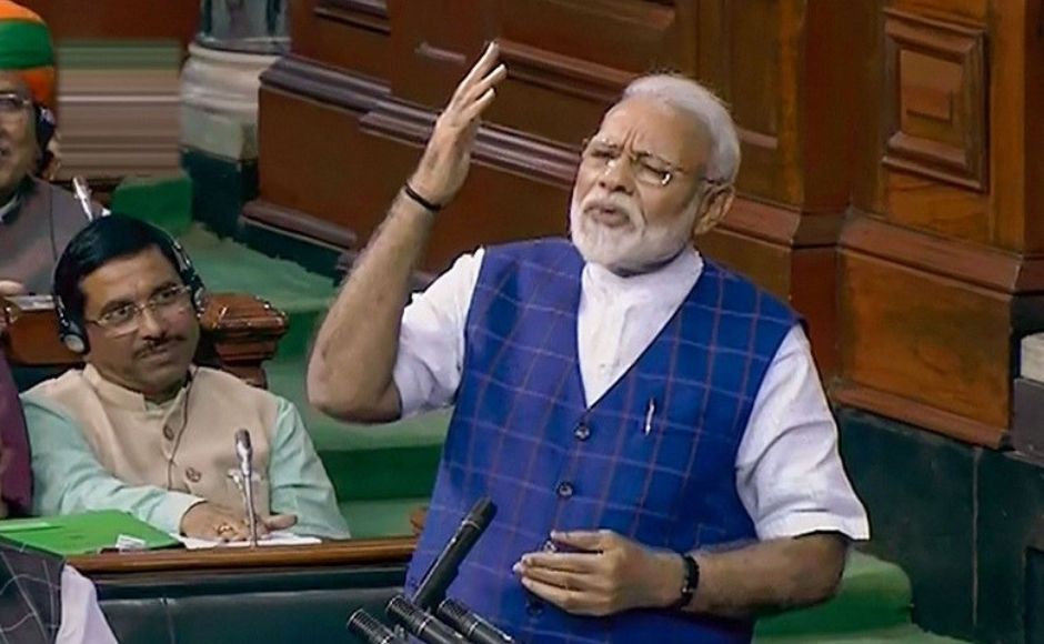 In his reply to the debate on Motion of Thanks to President’s Address, Prime Minister Narendra Modi on Wednesday launched a blistering attack on the Congress, saying it was sheer arrogance of the grand old party which is unable to accept its defeat and continues to question the mandate of the people by doubting EVMs. Image Courtesy: Twitter/@ANI