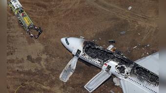 Rescue officials stand near an Asiana Airlines Boeing 777 plane after it crashed while landing at San Francisco International Airport in California on 6 July, 2013. Two people were killed and 130 were hospitalised after the plane crash-landed at San Francisco International Airport, San Francisco. The Boeing 777, which had flown from Seoul, South Korea, was carrying 307 people. Reuters