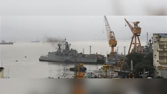 A naval chopper flies over the Mumbai naval dockyard: Reuters