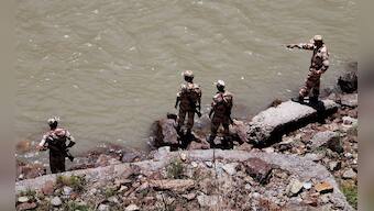 ITBP jawans carry out a rescue operation in Beas River near Pandoh Dam in Mandi on Monday a day after 24 engineering students from Hyderabad were washed away in the River near Thalot following discharge of water from Larji Dam. PTI