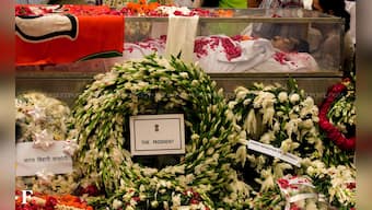 Wreaths laid by the President and other leaders flank late Gopinath Munde before the funeral. Naresh Sharma/Firstpost
