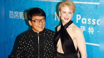 Australian actress Nicole Kidman and Hong Kong actor Jackie Chan (L) pose on the red carpet at the Huading Awards ceremony in Macau October 7,2013.REUTERS/Tyrone Siu