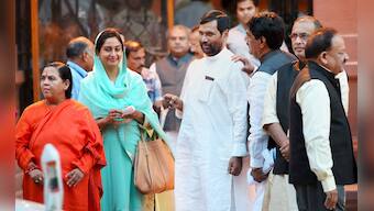 Union ministers Uma Bharti, Harsimrat Kaur, Ramvilas Paswan, Gopinath Munde, Radha Mohan Singh and Harsh Vardhan after attending the first Cabinet Meeting of NDA government in New Delhi on Tuesday. PTI