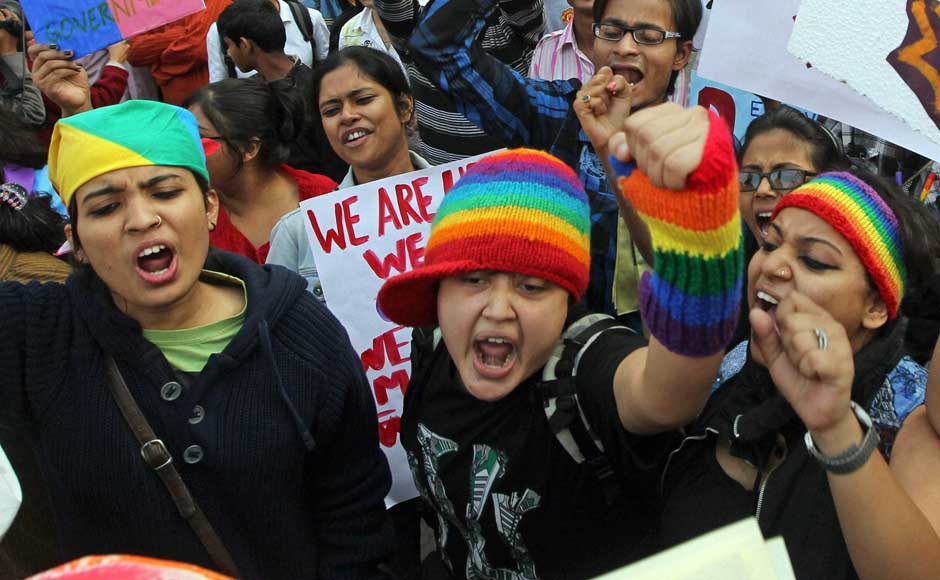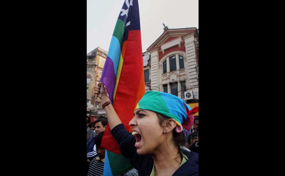 Members of the LGBT community participated in large numbers to protest the SC verdict in Mumbai. PTI