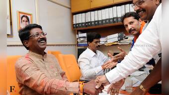 Arvind Sawant of the Shiv Sena being congratulated after winning from the Mumbai South constituency. Mexy Xavier/Firstpost