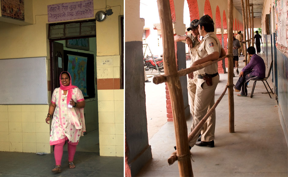 A female voter is all smiles after casting her vote. Security at the poll booths. Naresh Sharma/ Firstpost