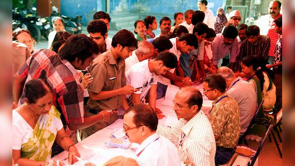 Voters stand in queue to at a polling booth in Mehrauli, Delhi to case their votes. . Naresh Sharma/ Firstpost