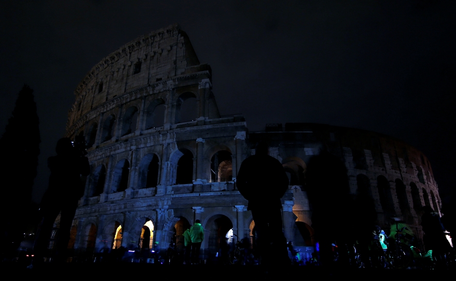 The ancient Colosseum after the lights were switched off for Earth Hour in Rome. Reuters
