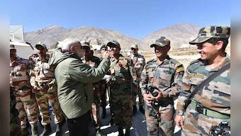 PM Modi paid an impromptu visit to Chango village, close to Somdu, to wish people on Diwali. "I was deeply touched by the impromptu reception and their joy," he tweeted. (Photo: Twitter @narendramodi)