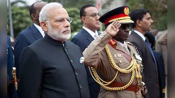 Prime Minister Narendra Modi reached Kenya, the final leg of his four-nation Africa tour on 10 July, and was accorded the ceremonial guard of honour at the state house. Photo: AP