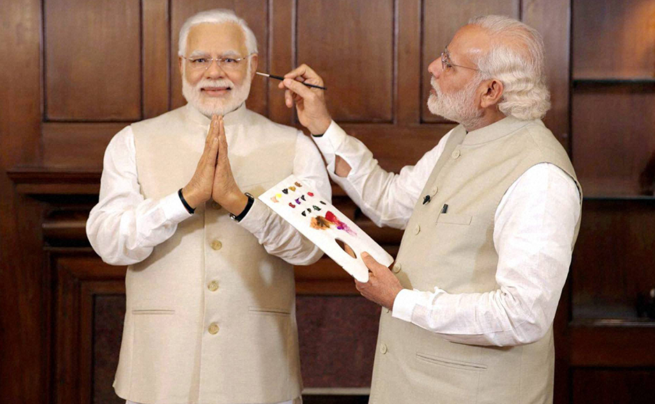 Prime Minster Narendra Modi poses with his wax statue due to be placed at London’s Madame Tussauds museum, in New Delhi. Three of his wax statues have been installed in Singapore, Hong Kong and Bangkok and one of them will be put up in London in the next eight days