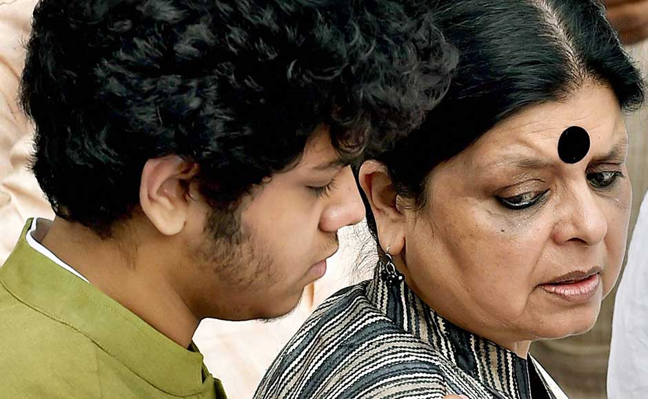 He was survived by his wife Deepa Dasmunsi and son Priyadeep, who were at his bedside at the time of his demise. Deepa and her son at the Congress party office Bidhan Bhawan. PTI