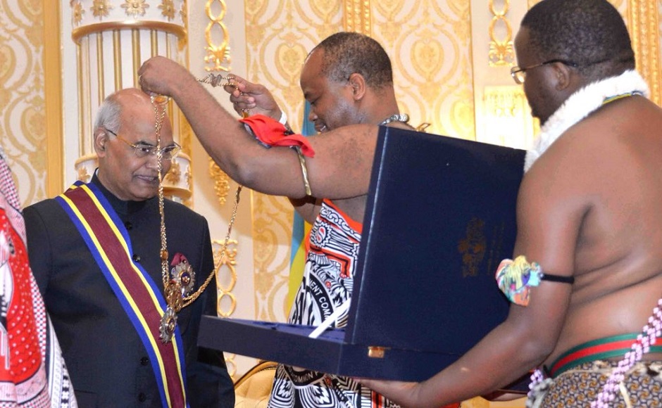 King Mswati III conferred Order of the Lion on Kovind. It is the highest civilian honour Swaziland bestows on non-citizens. Twitter @rashtrapatibhvn
