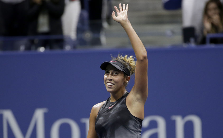 Madison Keys, of the United States, waves to the crowd after defeating Elena Vesnina, of Russia, despite losing the first set. She booked a round of 16 berth by defeating the Russian 2-6, 6-4, 6-1. AP