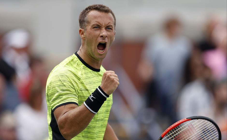 Philipp Kohlschreiber, of Germany, reacts after defeating John Millman 7-5, 6-2, 6-4. The German will next face Federer, against whom he has never won a match in their previous 11 encounters. AP