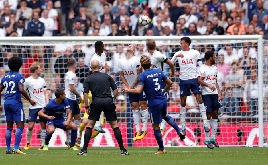 Chelsea’s Marcos Alonso gave his side the lead in the 24th minute of the London Derby with a stunning freekick into the top left corner. A despairing dive from Tottenham goalkeeper Hugo Lloris wasn’t enough to stop the ball-curling away from him. Reuters