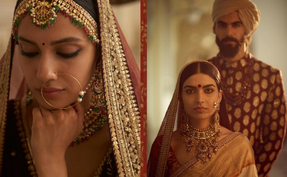 The second part, titled ‘The Baroda Collection’ is inspired by Raja Ravi Varma’s portraits of the royal family of Baroda. Chanderis, maheshwari and tissue sarees dominate the collection. Image via Sabyasachi Mukherjee/Instagram