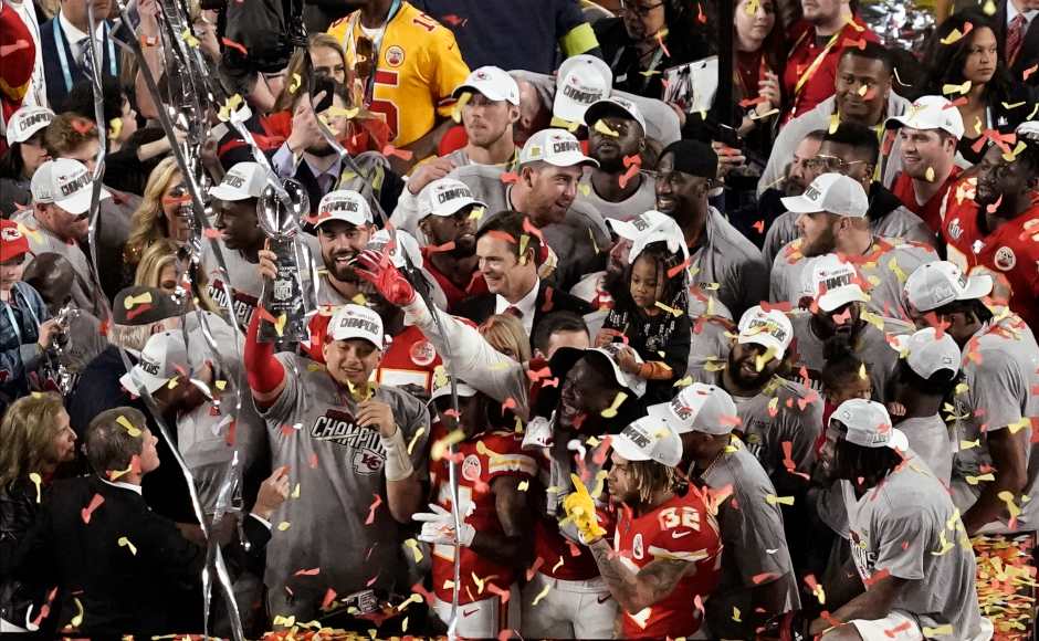 Kansas City Chiefs players celebrate after winning NFL Super Bowl 54 game against San Francisco 49ers. AP