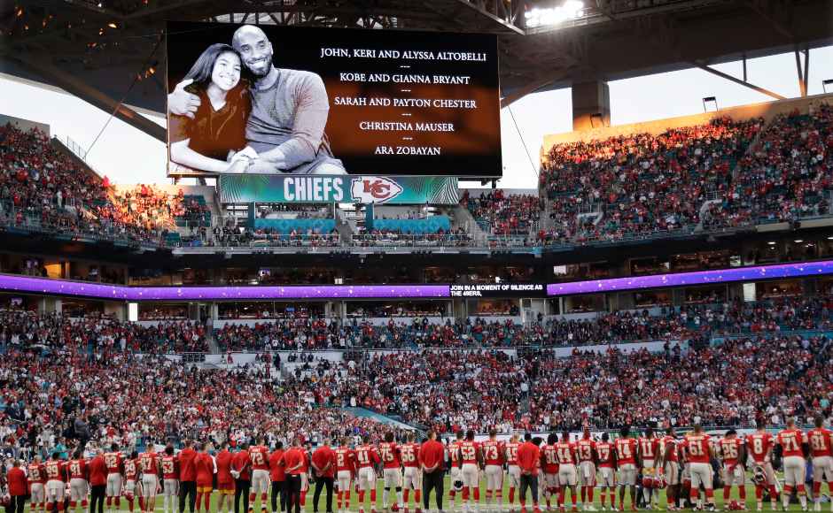 Kobe Bryant and Gianna Bryant and other victims of the unfortunate helicopter crash were paid tribute before the NFL Super Bowl 54. AP