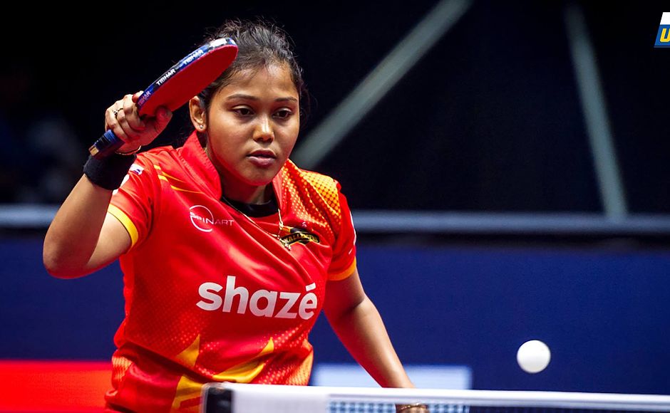 Mouma Das got a valuable point in her defeat to Sabine Winter. Image Courtesy: Facebook/UltimateTableTennis