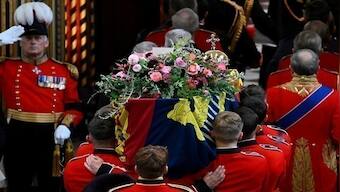Police and military personnel paraded as the Queen's coffin was carried to Westminster Abbey ahead of her funeral service. According to a report by BBC, the cortege accompanying the coffin to Wellington Arch has been led by the Royal Canadian Mounted Police. AP