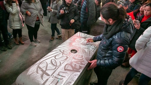 Amir Hussain, visiting from Denmark, uses table salt to draw a tribute to late football legend Pelé in Times Square in New York on Thursday, Dec 29, 2022. (AP Photo/Ted Shaffrey)[/caption] [caption id=“attachment_11903031” align=“alignnone” width=“640”]
